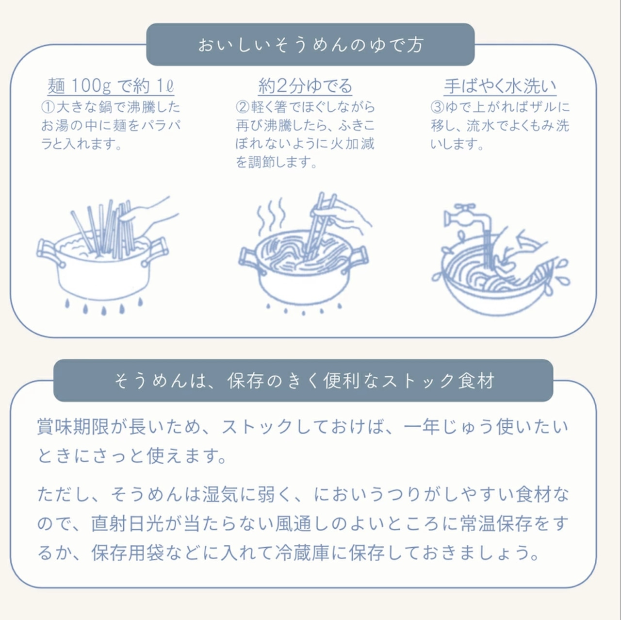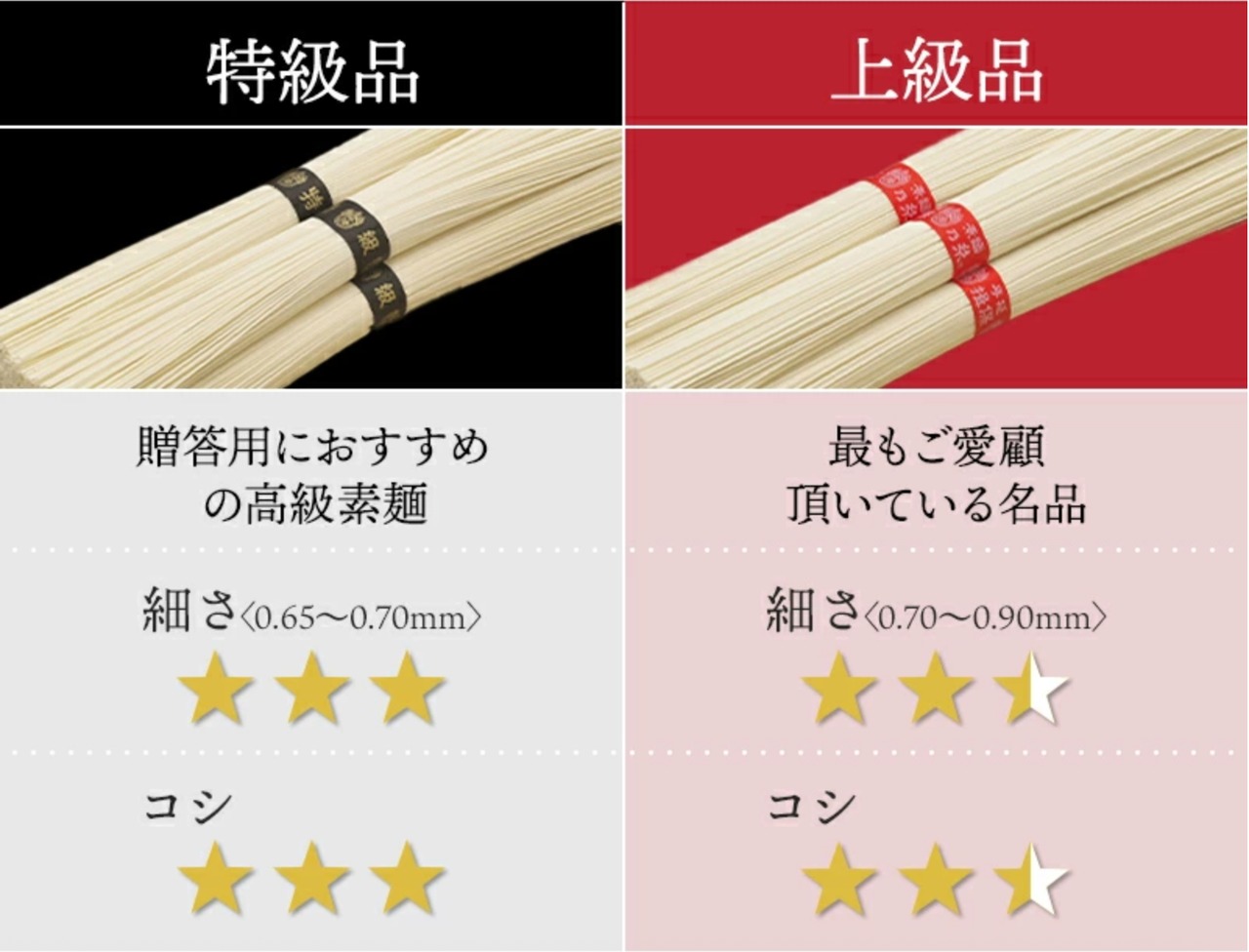 熟成により水分が程よく抜け、小麦の旨味が凝縮され、茹で伸びしにくく、なめらかなのど越しとしっかりしたコシがいっそう際立ちます。夏場の冷やしそうめんはもちろん、温かいにゅうめんや創作料理にも最適です。