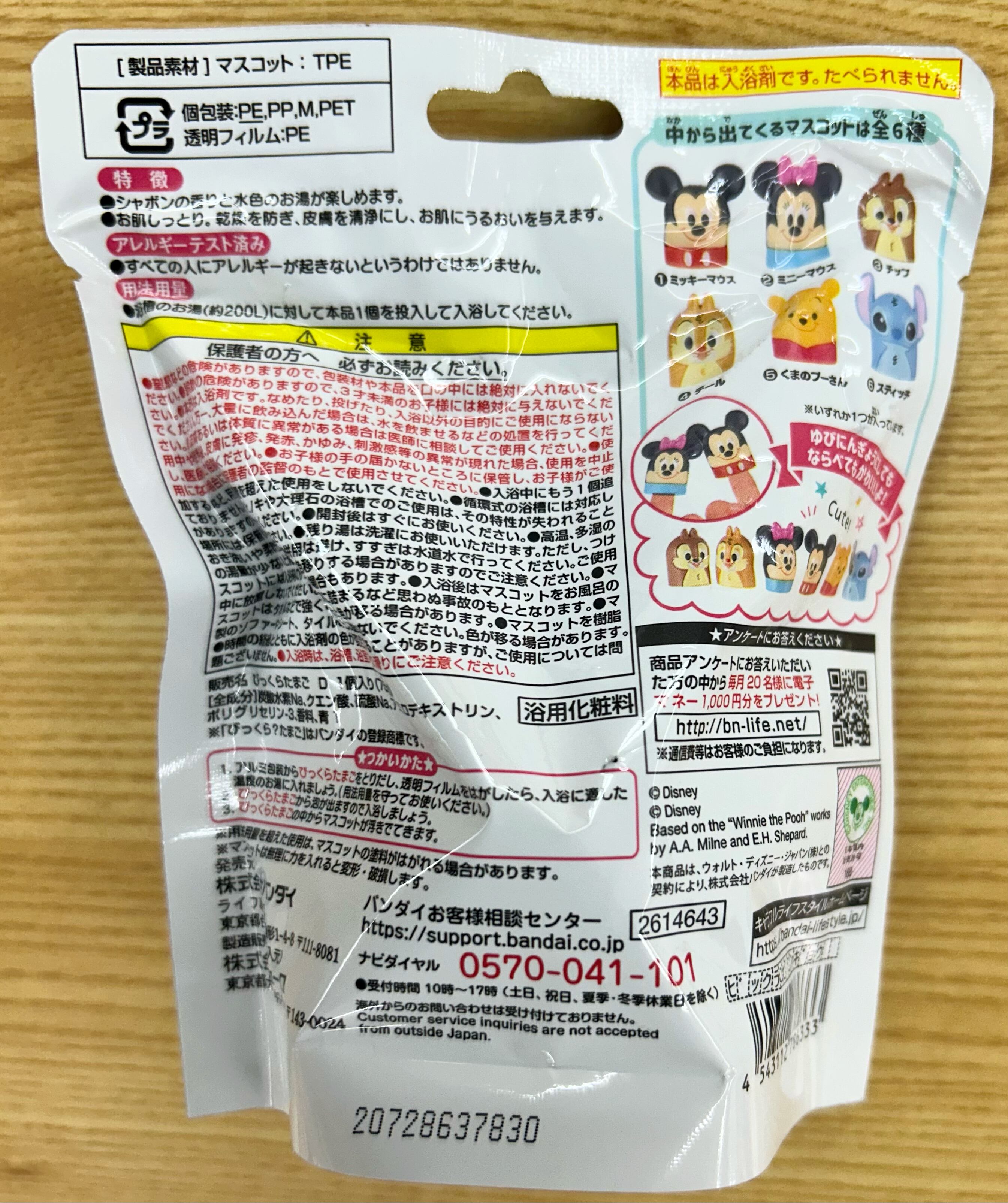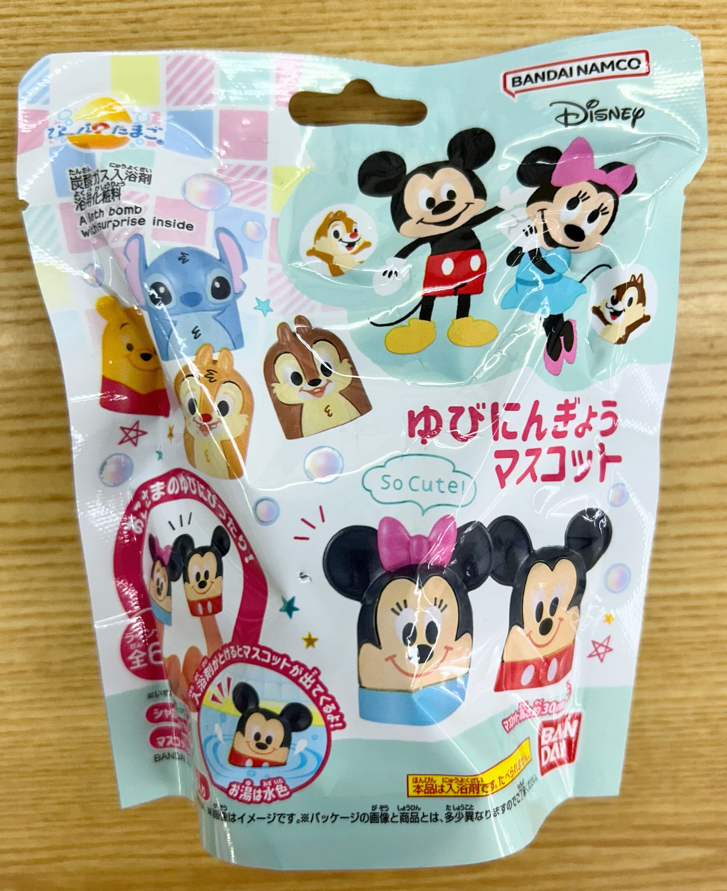 シャボンの香りの入浴剤から、ディズニーキャラの指人形が登場!どれが出るかはお楽しみ♪(全6種類ランダム)