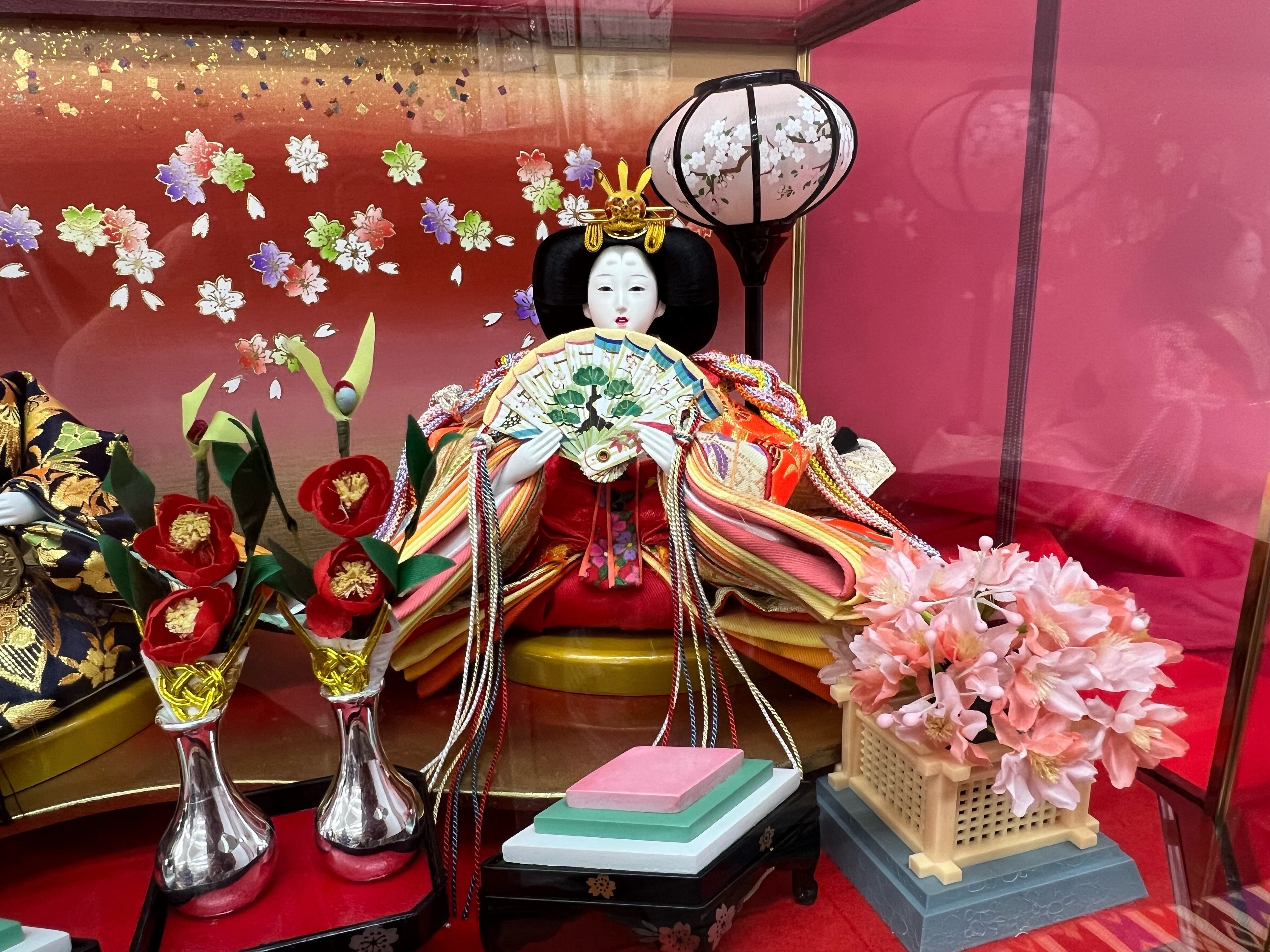 雛人形慶山作の二人飾りは、ガラスケースに入った特別な一品。桜の蒔絵が施された仕立てで、見た目にも華やかな雛祭りの飾り付けに最適です。さらに、ぼんぼり(電飾)が付いているので、夜も昼も美しく輝きます。箱から出してすぐにディスプレイ可能なので、手間がかかりません。